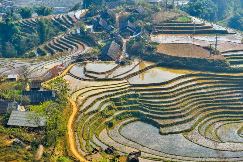 Arrivo a destinazione verso mezzogiorno. Direzione la valle di Muong Hoa, verso i villaggi di Lao Chai e Ta Van (a 16 km da Sapa), attraversando paesaggi di risaie terrazzate che hanno reso celebre Sapa. Scoperta della vita locale in un villaggio degli Hmong Neri.