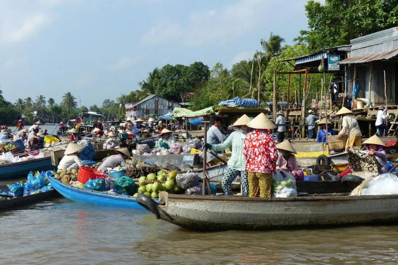 Départ matinal pour une petite croisière sur la rivière : en route pour le marché flottant de Cai Rang. Vous monterez à bord d’une barque qui vend des fruits pour déguster de l’ananas frais dans une atmosphère exotique. Retour vers Ho Chi Minh, déjeuner dans un restaurant local. Selon l’horaire de votre vol, transfert à l’aéroport. Nous vous aiderons pour les formalités d’enregistrement et vous embarquerez pour votre vol sur une compagnie régulière.