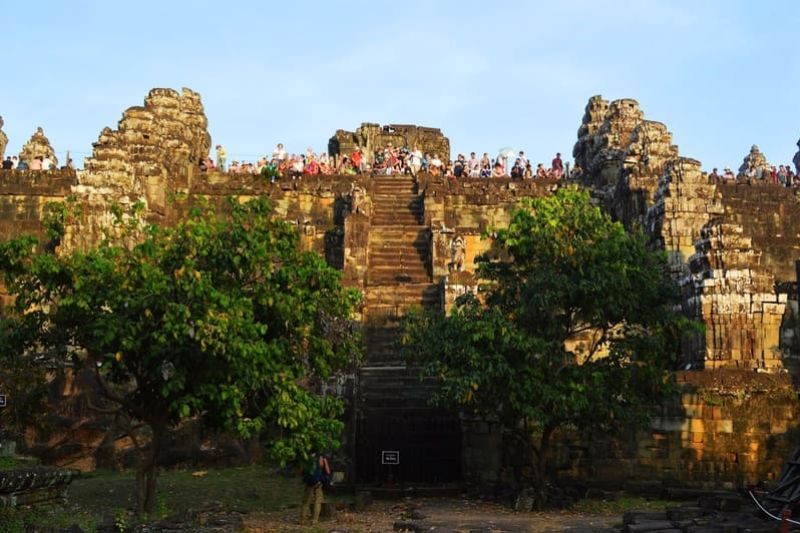 Journée de visite en moto-remorque « Tuk Tuk » pour la visite du site d’Angkor Thom, vaste ensemble architectural avec son centre du temple montagne du Bayon, célèbre pour ses tours aux 172 visages d’Avalokitesvara. Flânerie au temple de Baphuon dans l’enceinte de l’ancien Palais Royal. Visite de la terrasse des Eléphants et de celle du Roi Lépreux. Déjeuner au restaurant local. Après-midi, poursuite à la visite de l’incontournable temple d’Angkor Wat, chef-d’œuvre de l’art khmer devenu le symbole du Cambodge.